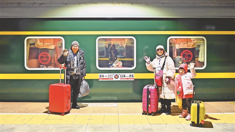 本报讯(记者王迪)记者从中国铁路哈尔滨局集团有限公司获悉,11月26日21时,来自江浙沪粤等地的240余名游客登乘Y685/8次旅游专列从哈尔滨启程,前往亚布力、漠河,开启了冬日邀约、找北寻冷之旅。这是今冬我省开行的首趟冰雪旅游专列。