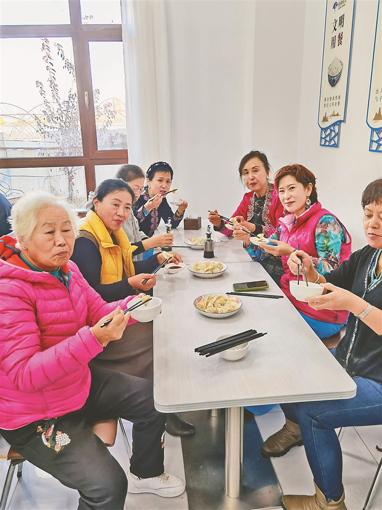环视食堂四周,桌椅板凳摆放整齐,萦绕着浓浓的饭香味。应老人要求,每周食堂都会包饺子、包包子。爱心食堂的工作人员明白,这不仅仅是老人喜欢吃带馅儿的食物,更是因为大家盼着聚在一起热络地干活、聊天的过程。