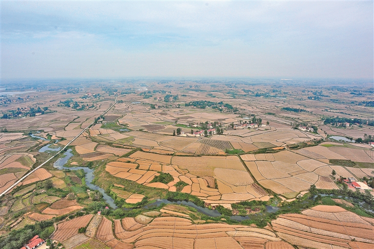 湖北沙洋城河遗址鸟瞰图。