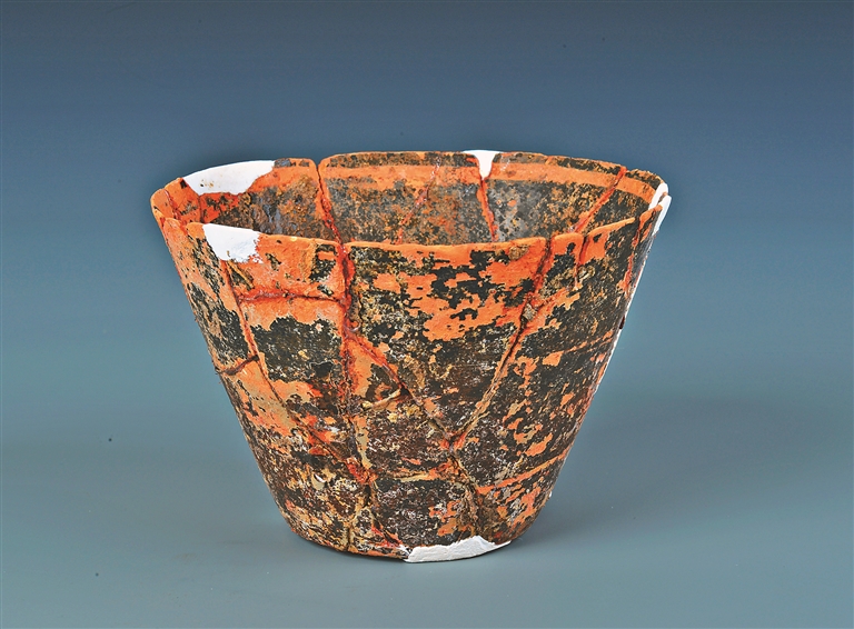 湖北沙洋城河遗址出土的蛋壳彩陶杯。新华社发