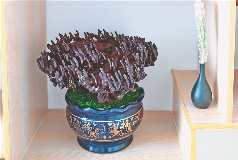 极具观赏价值的盆景灵芝。本报记者 马一梅摄