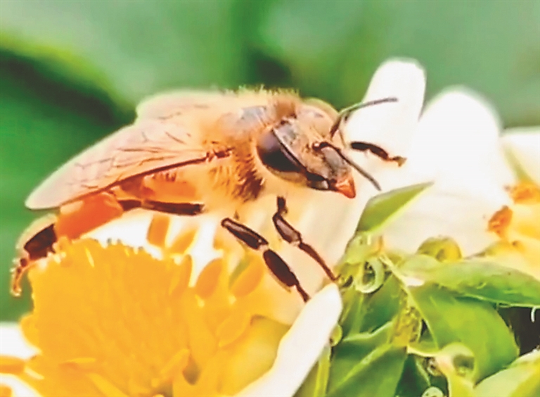 据了解,种植草莓对温度的要求较高,大棚室内外温差大、湿度高、空气流动性较差,棚内与自然昆虫隔离,缺少传粉媒介,导致自然授粉能力下降,畸形果增加,严重影响商品率。于是种植户请来“打工人”蜜蜂,小蜜蜂们也成了果农们提高草莓产量的“秘密武器”。