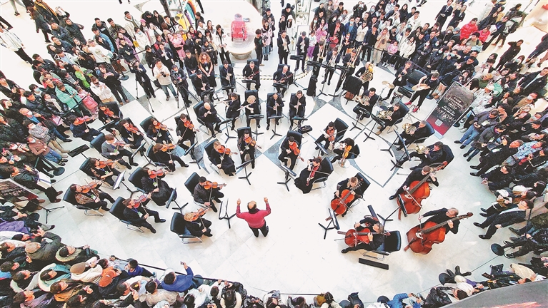 本报3日讯(记者蒋国红 蔡韬)3日下午,哈尔滨市哈西万达购物广场飘来优美的交响乐。这是罗马尼亚克拉约瓦歌舞剧院管弦乐团的一次快闪演出。