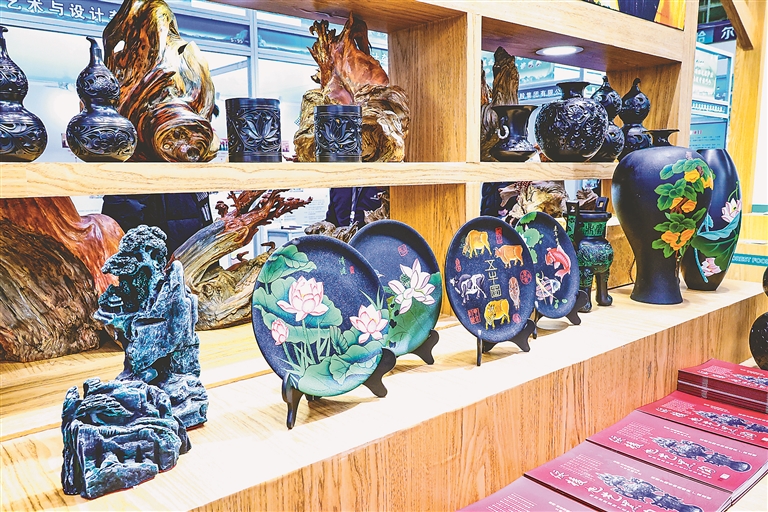 “森”标产品、北红玛瑙、黑陶工艺品……在2023黑龙江国际文化产业暨创意设计博览会上,龙江森工集团独立成展,共有五家单位携200余件展品亮相展会。