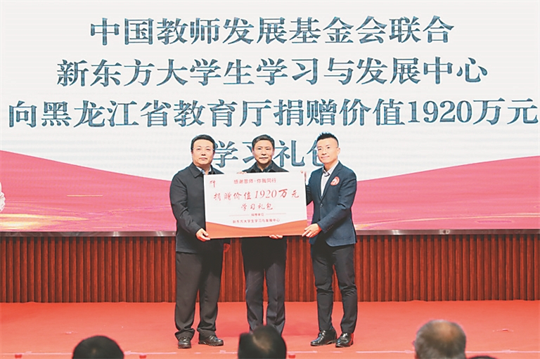 动员会上,中国教师发展基金会联合新东方大学生学习与发展中心向黑龙江省教育厅捐赠了价值1920万元的学习礼包。主办方向参会学校代表颁发了卓越组织团队、杰出组织团队、优秀组织团队荣誉证书,并为各校学生代表授旗。