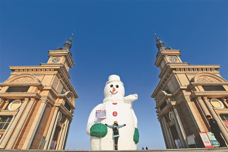 15日,万众瞩目的大雪人完工啦!在哈尔滨市松花江畔的音乐公园里,这个高约18米的大雪人扎着鲜红的围脖,戴着红色的绒帽,嘴角上翘,笑容迷人,伫立松花江畔为冰城的冬季代言,引来众多市民和游客前来与它合影留念。这几年,这个大雪人获得超高的人气,音乐公园已成为外地来哈游客必到的打卡地。