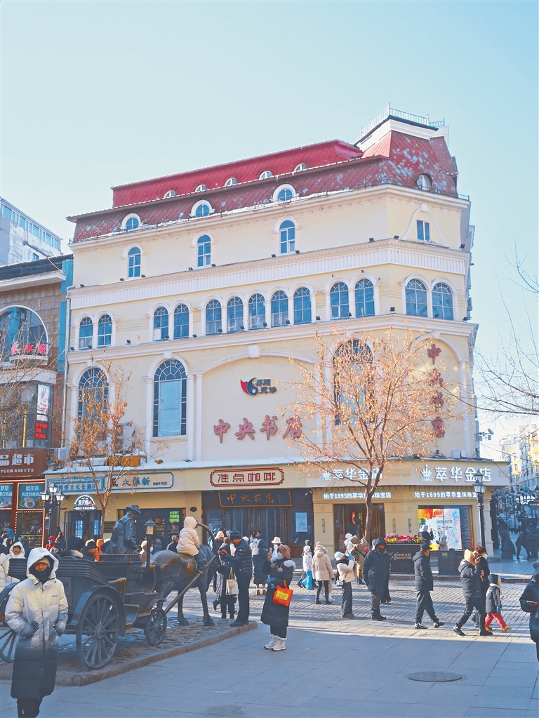当下许多实体书店门厅冷落时,坐落于哈尔滨百年老街上的中央书店却人气很旺。