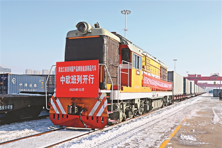 本报18日讯(记者王迪)18日,一列满载55个集装箱110台新能源商品汽车的中欧班列,从哈尔滨国际集装箱中心站驶出,经同江铁路口岸驶向欧洲。这是今年我省继开通国产商品汽车、二手车中欧班列线路后,新开通的又一条国产新能源商品汽车中欧班列线路。