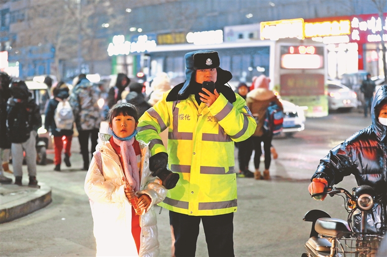 李乐龙说,每天的“护学岗”任务和上下班时间重叠,道路通行困难,需要将车辆和人流分别管控放行,学生放学之后人流量很大,经常有家长和孩子走散的情况,我们遇到了这种事一定赶紧联系上家长,免得相互担心。