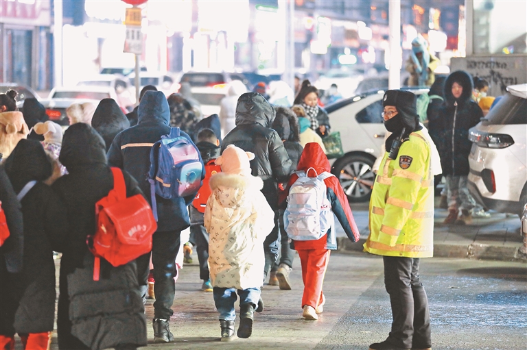 随着寒潮的来袭,我省大部分地区气温骤降。18日,绥化市公安局交通警察支队北林大队深入辖区学校常态化开展“护学岗”活动,抓好冬季中小学及周边道路交通安全管理工作,进一步消除安全隐患,全面遏制道路交通事故发生,保障中小学生上下学期间道路交通安全。