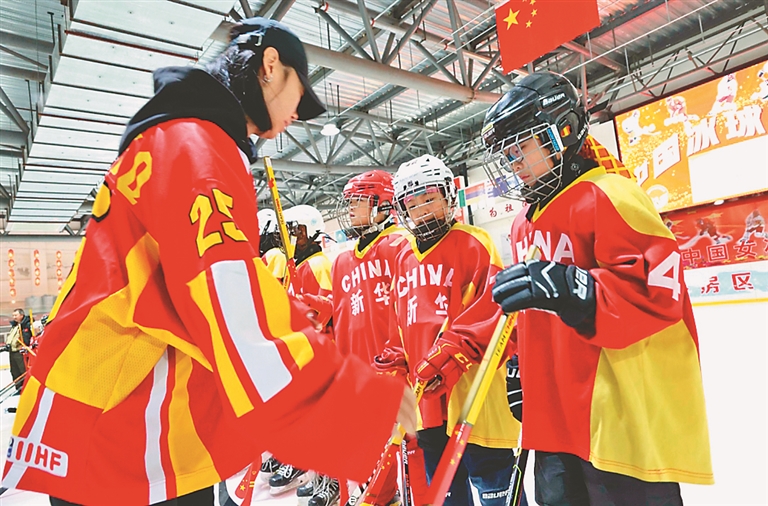 望着“两代人”,原新华小学校校长刘万富、教练王迺伟的脸上露出了幸福的微笑。“学校坚持以传承与发展冰球项目为办学特色,全力为国家冰球事业培养优秀运动员、教练员、裁判员及冰球项目管理人才。黑龙江省体工队女子冰球队、哈尔滨市体育运动学校冰球队,新华小学输送的学员占了‘半壁江山’。”刘万富自豪地说。