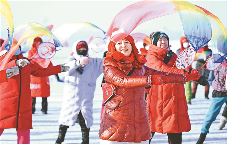 雪地柔力球、雪地太极拳等表演,让群众认识到陆地体育项目与冰雪结合后的新奇趣味。