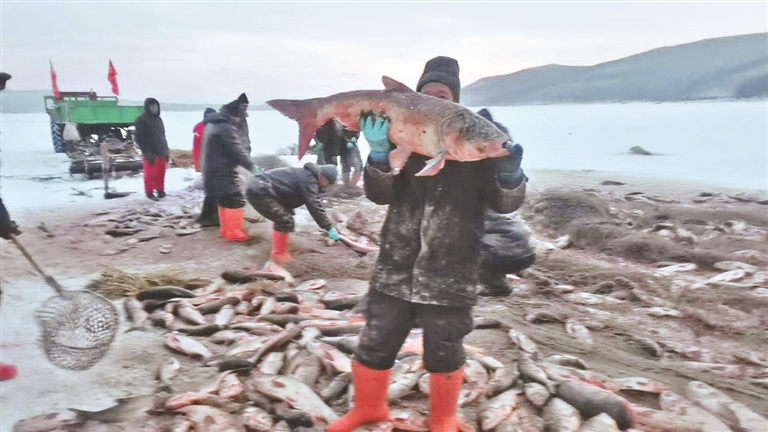 喜获大鱼。图片由牡丹江镜泊湖旅游集团提供
