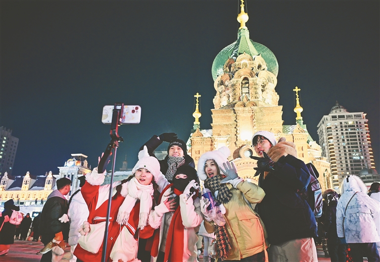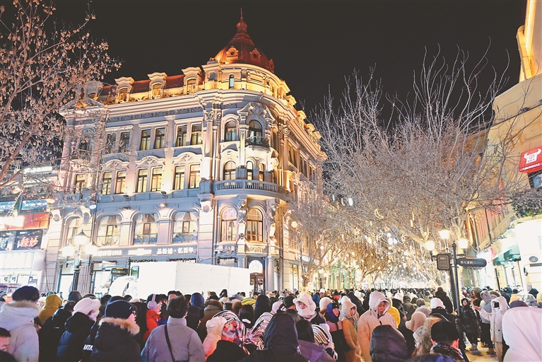 2023年12月31日临近零点,年终岁尾的冰城哈尔滨热闹非凡。中央大街、索菲亚建筑艺术广场人头攒动。大批的游客和市民涌到哈尔滨著名的旅游景点,在这里跨年,感受冰城最浪漫的新年气氛。