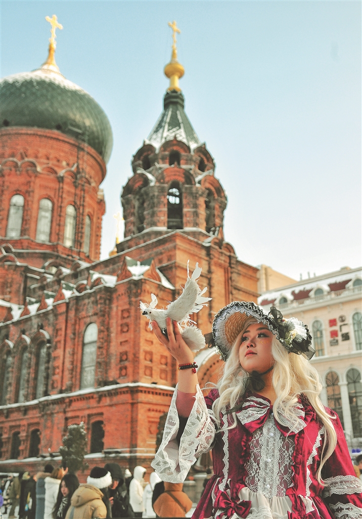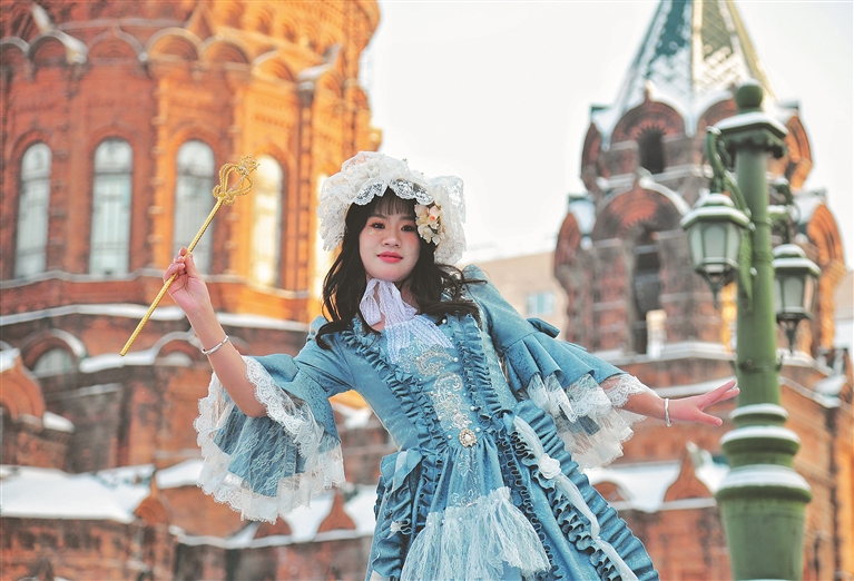 身着欧式宫廷服饰,手拿鲜花或权杖。裙摆飘飘,以索菲亚教堂为背景,或公主、或女王,在哈尔滨的寒冬中,留下华丽的影像,哈尔滨索菲亚建筑艺术广场俨然成了一个巨大的代入式拍摄场。很多人发现,这个冬季,和冰雪游一起火起来的还有一个词“旅拍”。冰城人熟悉的建筑艺术广场一夜之间变成了“公主”“女王”们的背景板,成为全国旅拍热门打卡地。这个冬季,来哈尔滨当一次冰雪“公主”和“女王”,成为很多年轻人的一份“执迷之旅”。