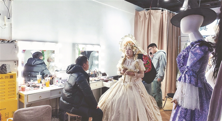 “我们团队都是‘90’后,每天早上9点多,化妆师、造型师已经开始工作,10点多摄影师们已经开始第一组拍摄。按照每组半个小时左右的拍摄进程,拍摄会一直持续到晚上10点30分索菲亚教堂熄灯以后。”蔡昕告诉记者,目前他们店的每日客单量在50人左右,最远的客单已经排到了农历新年,预计1月份寒假开始后,每天客单量还会增加。