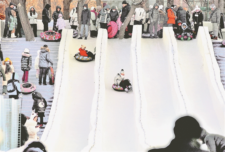 冰雪嘉年华园区内,既有惊险刺激的收费游乐项目,也有许多是供游人免费玩的公益项目。
