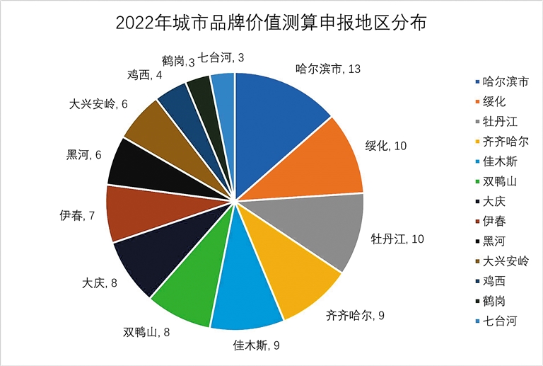 有效申报地区分布上,哈尔滨最多,申报地区共13个,其次是绥化和牡丹江,申报地区分别有10个。