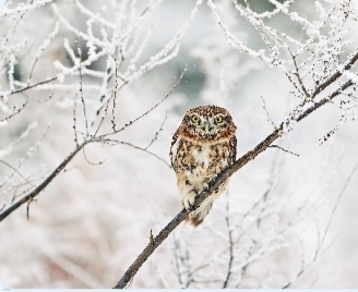 猫头鹰栖上挂着雾凇的枝头,仿佛进入了魔法世界。 张宪帮摄