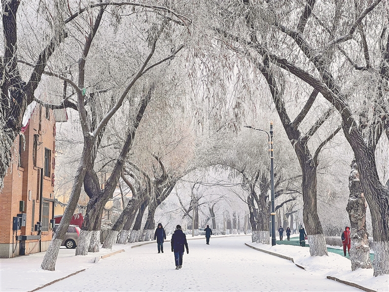 哈尔滨整座城市出现迷人雾凇景观,市民纷纷走出家门进入这童话世界。本报记者 刘心杨摄