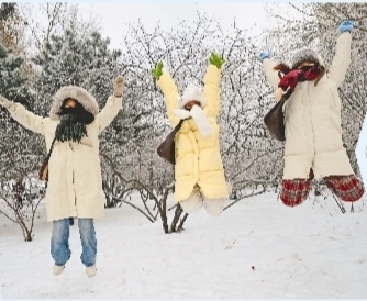三位来自湖南的女孩在雾凇美景中兴奋得跳了起来。 本报记者 荆天旭摄