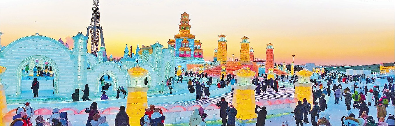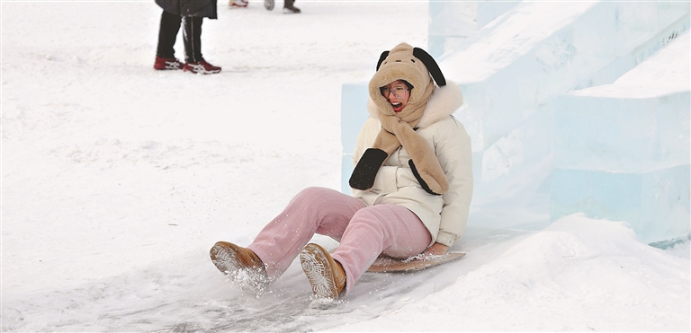 游客在哈尔滨冰雪大世界游玩。本报记者 张澍摄