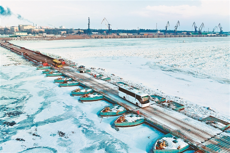 本报讯(刘松 王彤 记者郭俊峰)日前,中国黑河至俄罗斯布拉戈维申斯克市客运浮箱固冰通道正式开通。该通道全长540米,双向车道,由中方13艘、俄方6艘大平底船组成客运浮箱固冰通道。