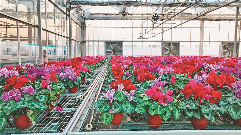 智能温室大棚里鲜花盛开。本报记者 孙昊摄