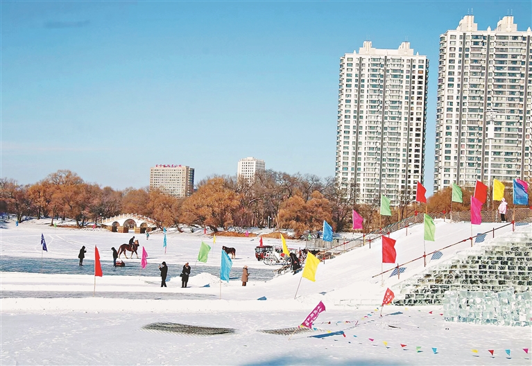 近日,齐齐哈尔市龙沙公园冰雪乐园娱乐项目完成施工,各种娱乐设施布设到位,开始试营业。该乐园设有冰滑梯、雪滑梯、雪地摩托、雪地观光马车、冰上自行车等20多种娱乐项目,市民游客观看花灯、冰雕、雪雕、打卡拍照,其乐融融。