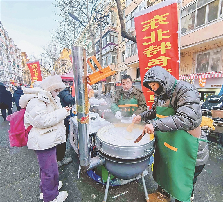 每天早晨,聚集了哈尔滨特色“网红”小吃的红专街早市就迎来了热闹时刻。