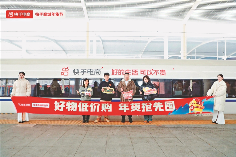 作为本次年货节的预热活动之一,以“老铁年货请上车”为主题的快手商城年货节专列启航仪式,在哈尔滨西站举行。
