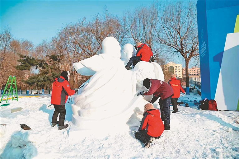 3天时间,来自澳大利亚等7个国家和地区的57支大学生队伍,在严寒中打磨出一座座令人叹为观止的雪雕作品。李克良说,国际雪雕活动不仅是体力和技艺的竞赛场,还是一个文化交流的平台,让各国青年通过冰雪加深了解、增进友谊。