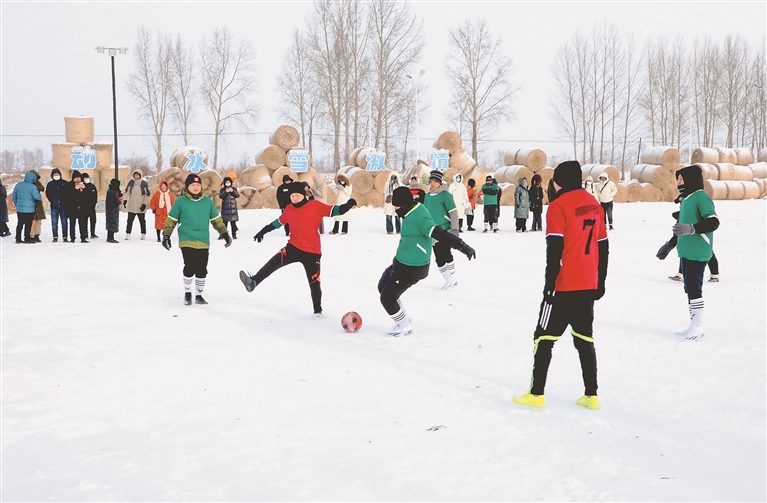 此次冰雪运动“汇”共有雪地村超、雪地自行车运粮接力赛、雪地拔河赛、高山雪圈接力赛等7个比赛项目。运动员们化寒冷为力量,鼓足力气、奋力拼搏,前来观看的观众们热情呐喊、欢呼助威,整个比赛现场充满了挑战和激情。