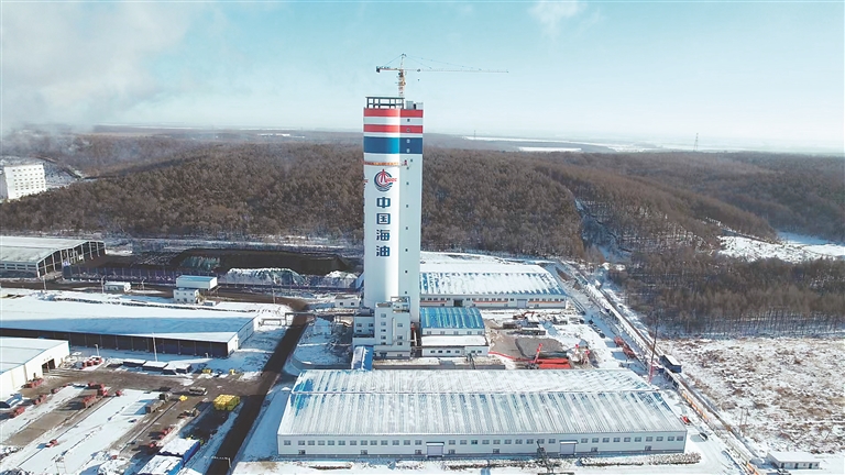 中海石油华鹤煤化有限公司是我省“煤头化尾”战略核心示范企业,是东北地区最大的大颗粒尿素生产运营企业。年产30万吨复合肥项目规划总建筑面积17200平方米,总投资一亿元,建设包括造粒塔、原料库房、成品库房等8个单元建筑,主体建筑造粒塔于2023年5月开工,用时33天完成了114.2米滑模登顶。