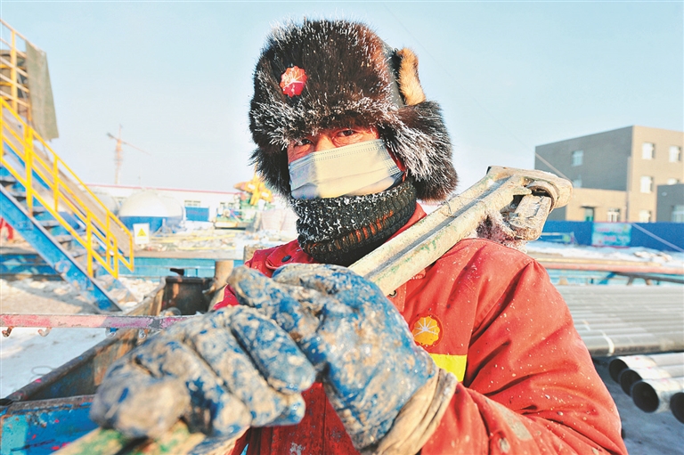 严寒中的石油工人。