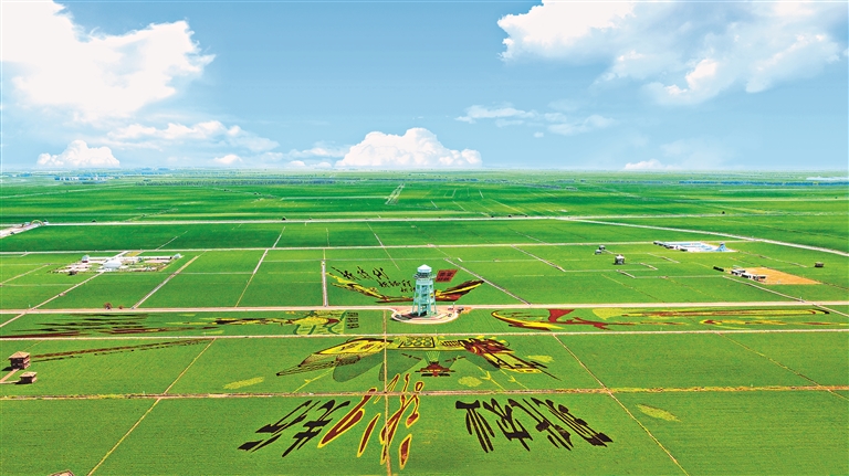 富锦市万亩水稻公园稻田画。