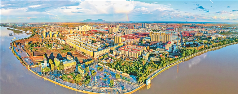 松花江沿岸城市富锦。