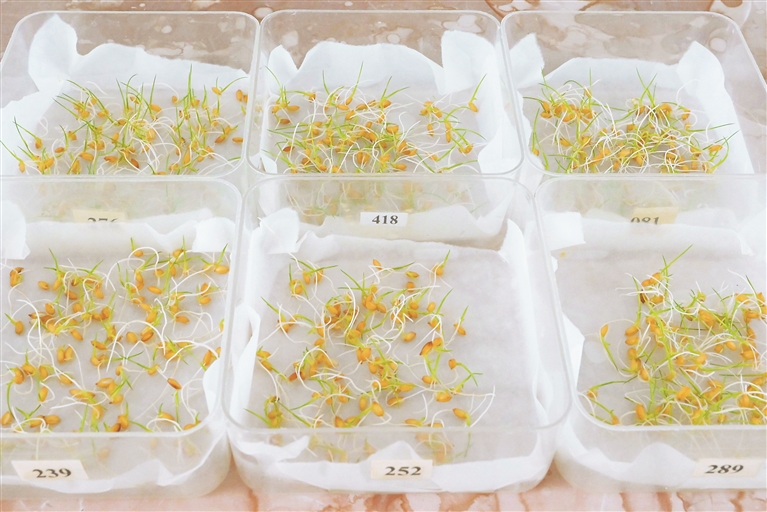 在庆丰分公司良种繁育实验室中,检验员们正在进行冬季贮存稻种的发芽试验工作。