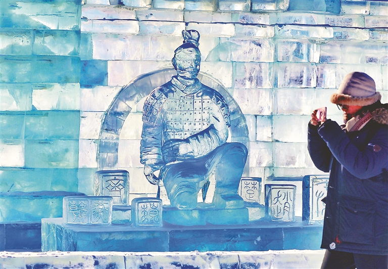 近日,一组名为“冰马俑”的照片迅速走红网络,照片中的“冰马俑”由人工智能合成,并非真正的冰雕作品。与此同时,在哈尔滨冰雪大世界官方发布的“你想在下一届冰雪大世界看到什么?”文章下,网友纷纷喊话想看“冰马俑”。为了让众多网友圆梦,哈尔滨冰雪大世界在园区内的国际冰雕比赛作品展示区,最新雕刻一组“冰马俑”冰雕景观,一亮相便吸引大批游客围观、拍照。