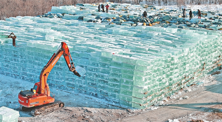 在规模上,本届哈尔滨冰雪大世界存冰量达到10万立方米,打破历史纪录。能用这么多存冰,不仅展现了哈尔滨在冰雪产业上的领先地位,也彰显了哈尔滨冰雪大世界的科技实力和创新魅力。