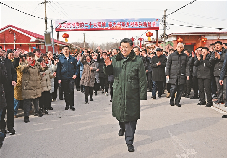 2月1日至2日,中共中央总书记、国家主席、中央军委主席习近平来到天津,看望慰问基层干部群众。这是1日上午,习近平在西青区辛口镇第六埠村考察时,向村民们挥手致意。新华社记者 谢环驰摄