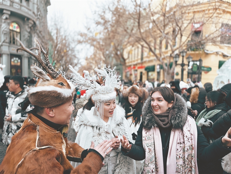 “这个市集太好了,我们不仅大饱眼福,还买到了很多质优价美的黑龙江特产,回家过年可以满载而归了!”在主会场的“龙江非遗市集——春联赠送区”,来自河南省的“小金豆”董芳和李然然手捧黑龙江书法家现场为她们书写的“龙年大吉”对联,开心地对着手机里正在连线的朋友们说:“这里有看不完的北域风光、观不够的节庆民俗、享不尽的非遗美食、赞不绝的传统技艺,小伙伴们快来吧!”