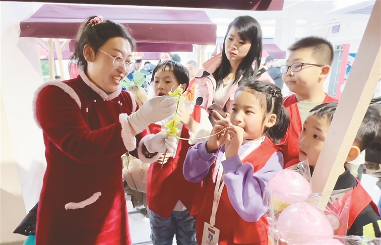 值得一提的是,在“非遗展演区”,参观者不仅可以欣赏到国家级、省级非遗传承人现场表演传统音乐、传统戏剧、综合曲艺类等精彩节目,同时还能观赏到非遗传承人现场展示手工艺品的制作过程。此展区还定点推出非遗盲盒抽取活动,为观众增添趣味性和体验感。