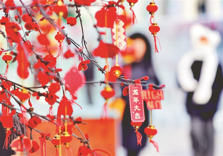人们将这些节日饰品买回去装点家居,迎接新春佳节的到来。