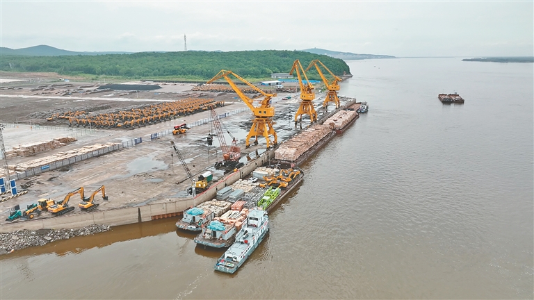“2023年,同江铁路口岸新增了2台50吨门吊、6台20吨门吊,引进了高腿式履带挖掘机,作业效率提升近20%。目前,该口岸已经实现24小时通关,一昼夜换装260车,货运量突破350万吨。大进大出、快进快出的贸易画面正在这里上演。”同江市口岸综合服务中心副主任孙洋说。