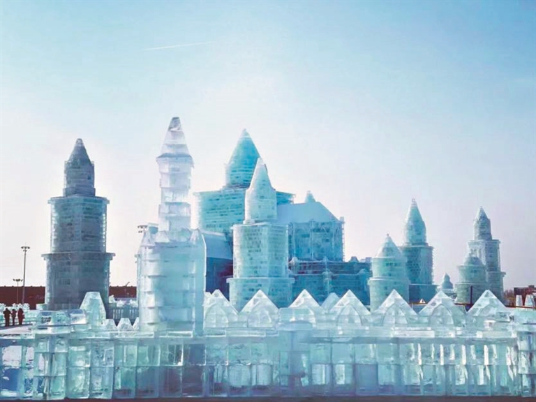 哈尔滨冰雪大世界冰景。