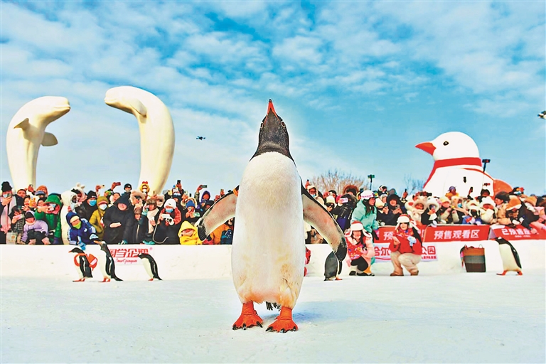 本报讯(记者董广硕)这个冬天,哈尔滨极地公园已连续进行53场免费的“淘学企鹅”冰雪大巡游,顶流明星“淘淘”的曝光量已超过100亿次。