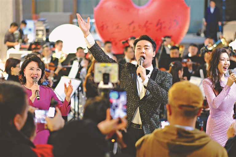 歌唱家在哈尔滨商场里“快闪”献歌,展现“音乐之都”的魅力。