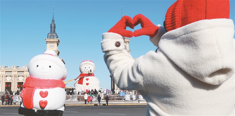 近日,哈尔滨市音乐公园内的“网红大雪人”在经过有关部门的安全检查后,暂不拆除,依然伫立在江边。每天,这里人流如潮,各地游客纷纷来此打卡拍照。