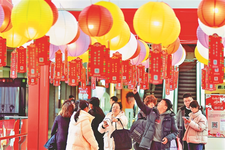 2月24日,正月十五元宵节当天,哈尔滨市各商场内举行了丰富多彩的活动迎接佳节的到来。赏花灯、猜灯谜、扭大秧歌、体验民俗,市民们在一起喜气洋洋闹元宵。本报记者 苏强摄